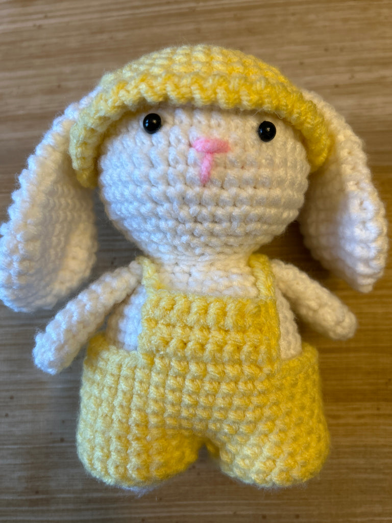 This Little Easter Bunny Amigurumi is an adorable and hand-crafted addition to your holiday decor. With its yellow overalls, it's a playful and charming reminder of the Easter season. Made with care and attention to detail, this crochet bunny is sure to bring joy to your home.