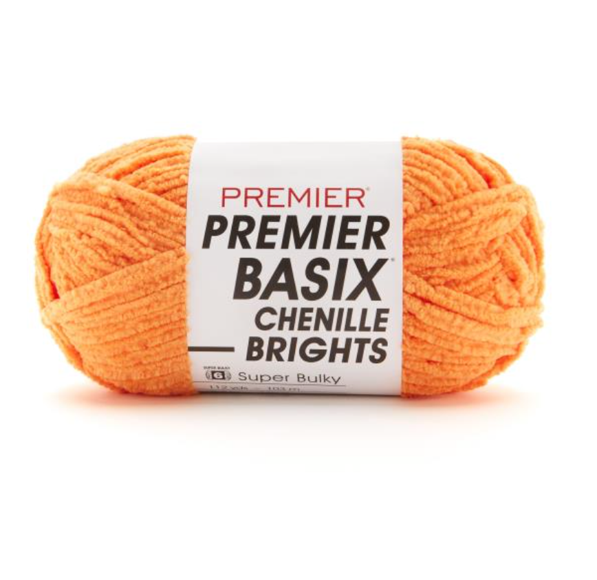 Premier's popular Basix® Chenille is now available with new colors in a 150g ball for more versatility with projects. This soft chenille makes cozy blankets, cuddly toys, and more. With this super bulky yarn, your projects will work up in no time, making it perfect for quick gifts. Craft comfortably knowing that this yarn is safe for you! It has passed the highest standard, suitable for direct contact with the most sensitive skin, even babies and small children. Weight Category: 6. Content: 100% Polyester. Put up: 5.3oz/150g, 112yd/103m. Gauge: 8sx13r=4 inches on size US11/8MM knitting needles. Suggested crochet hook size: L-11/8MM. Dyelotted: we try but are not always able to match dyelots. Machine Wash Warm, Do Not Bleach, Dry Flat, Do Not Iron, Dry Clean. Imported.