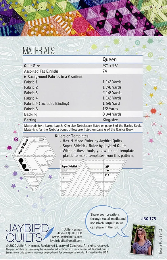 Nebula Block of the Month Pattern set features templates, finishing directions and nine block patterns that, together, create the stunning Nebula Quilt.